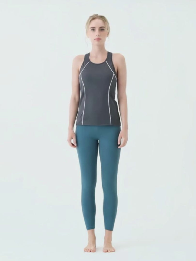極細パイピングと立体カットで、身体のラインをすっきり美しく演出。締め付け感なく、胸元はしっかりホールド。ヨガ・ピラティス・トレーニングまで対応。4WAYストレッチ素材で、快適さとスタイルアップを両立。